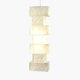 The lamps are created from handmade washi paper and bamboo ribbing, supported by a metal frame.