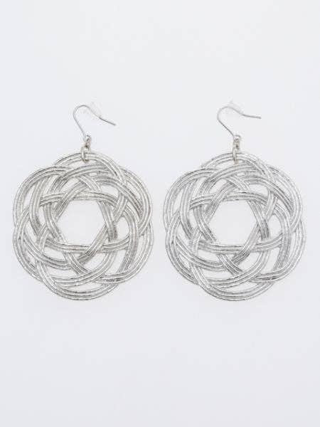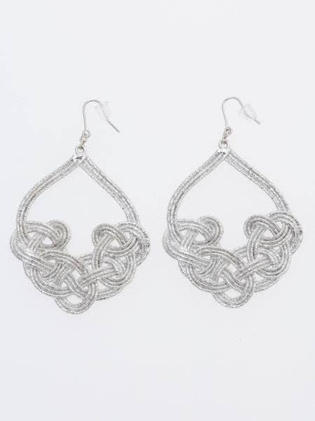 These statement earrings feature traditional mizuhiki motifs long used in Japanese celebrations. Designed to catch the light, they have a bold presence that brings shimmer and movement to the face. The kesa knot is derived from the shutara knot, historically used as ornamentation by Buddhist monks, while the roppo-ojime knot is an auspicious form incorporating the awaji knot. The awaji knot is believed to bind karma, as it cannot be undone.